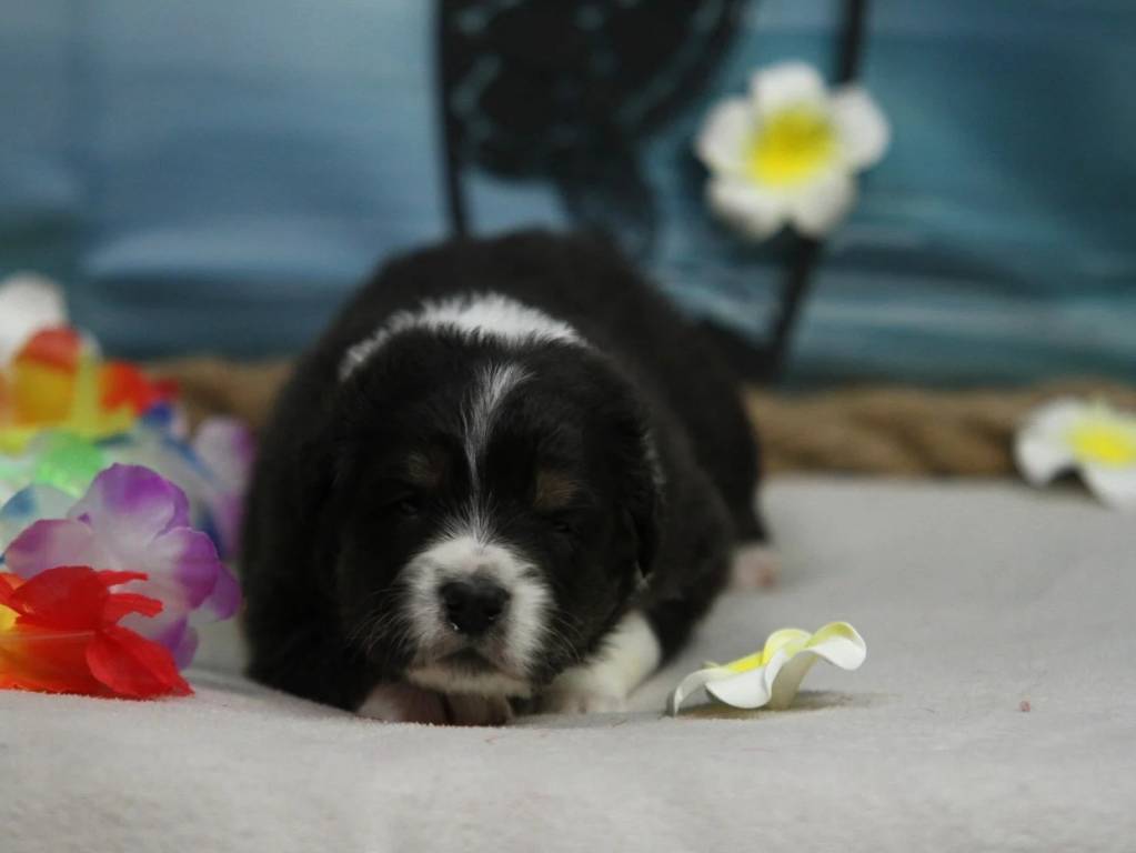 Le 16 février 2026, une nouvelle génération de Berger Australien a vu le jour dans notre élevage. Issue de l’union entre Ulys Du Domaine De La Tineliere et Secret Star Is Born Of Baiwells Royal Aussies, cette portée de sept chiots est enregistrée au Livre des Origines Français (LOF). Parmi eux figure Bahamas Abacos Du Val Danton, mâle noir tricolore à queue courte, proposé au prix de 900 euros.