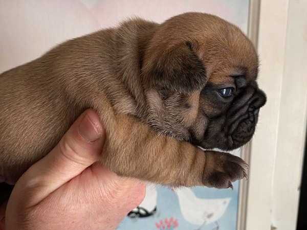 Nous vous proposons de réserver des chiots Bouledogues Français nés le 21 mars 2022 : 2 mâles et 2 femelles au pelage fauve.