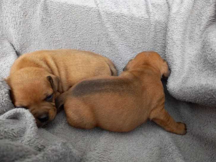 Nous vous invitons à faire la connaissance de notre magnifique portée de 5 chiots Staffordshire Bull Terriers (Staffie), de couleur rouge, nés le 05 juillet 2025 et disponibles à partir du 31 août 2025.