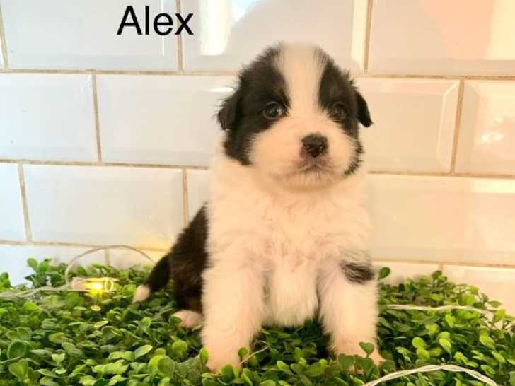Neuf superbes chiots Berger Australien inscrits dans le Livre des Origines Français (LOF) nés le 22 février 2025, élevés en famille avec leurs parents et habitués aux enfants. Parmi ces cinq mâles et quatre femelles, Alaska, une femelle aux yeux vairons, se distingue par son regard unique.