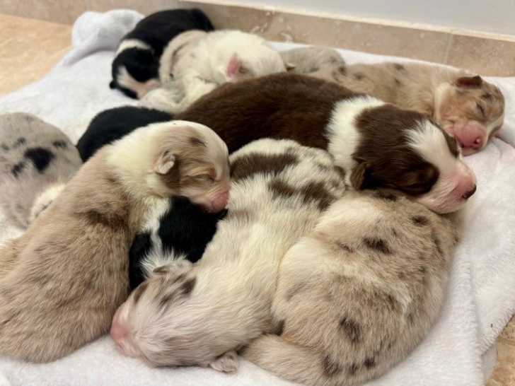 Neuf adorables chiots Bergers Australiens inscrits au Livre des Origines Français (LOF), nés le 29 juin 2025 sont disponibles à la réservation. S’agissant de quatre mâles et cinq femelles, ceux-ci sont élevés en famille, entourés d’enfants, d’autres chiens et de chats, pour une socialisation optimale. Les visites sont possibles dès le 14 juillet, uniquement sur rendez-vous.
