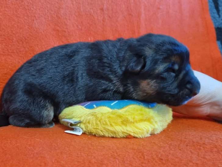 Nous aimons observer la singularité qui s’esquisse dès les premiers jours. Chiot N°6 De l'hacienda del matador, femelle Berger Allemand noire née le 20 février 2026 à Colombier Saugnieu, attire déjà l’attention...