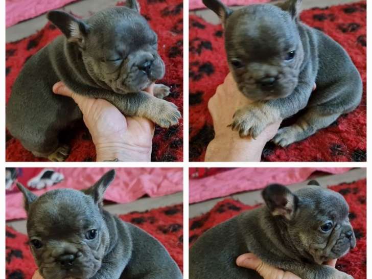 Sur une portée de trois chiots Bouledogue Français exotique nés le 14 février 2026, deux mâles et une femelle sont disponibles à la réservation. Élevés en famille, ils sont habitués aux enfants et aux autre...