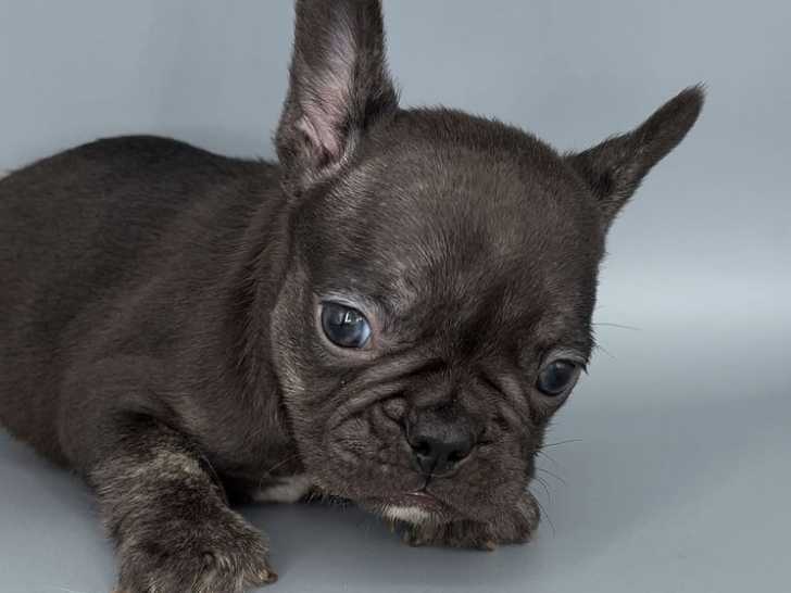 Sur une portée de cinq chiots Bouledogues Français, une femelle de couleur chocolat tan est disponible à la réservation. Elle est née le 15 mars 2022 et n’est pas inscrite dans le Livre des Origines Français (LOF).