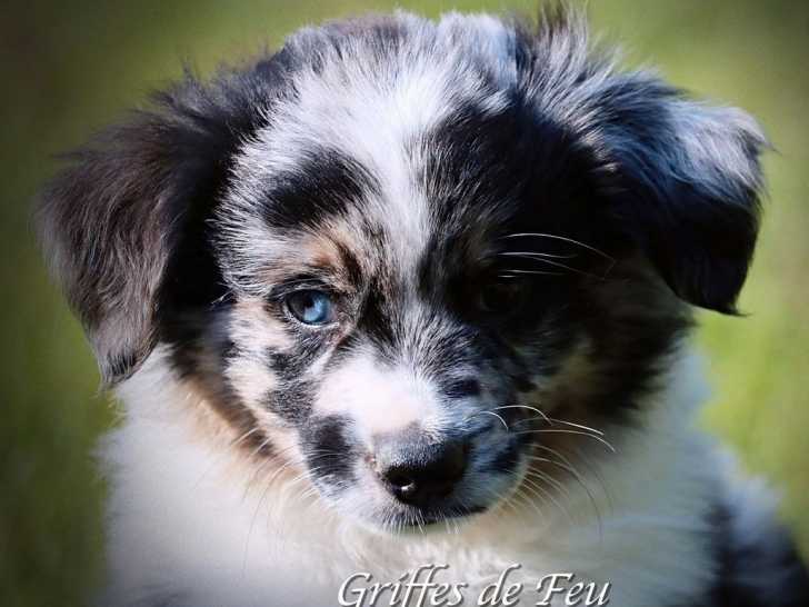 Nous avons un chiot Berger Américain Miniature né le 1er avril 2022 dans notre élevage. Seul dans sa portée, il est de couleur bleu merle, et inscrit dans le Livre des Origines Français (LOF).