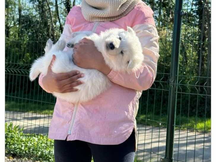 Plusieurs magnifiques chiots Berger Blanc Suisse, sont prêts à rejoindre leur nouvelle famille. Ces petites boules de couleur blanc sont proposés pour 1500 euros chacune. Ils marchent en laisse, sont propres...