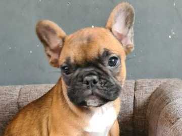 Vous pouvez acheter un chiot Bouledogue Français disponible tout de suite dans notre élevage. Il est né le 27 mars 2022 et possède un pelage de couleur fauve et blanc avec masque noir. Il est de pure race, mais n’a pas été déclaré au Livre des Origines Français (LOF).