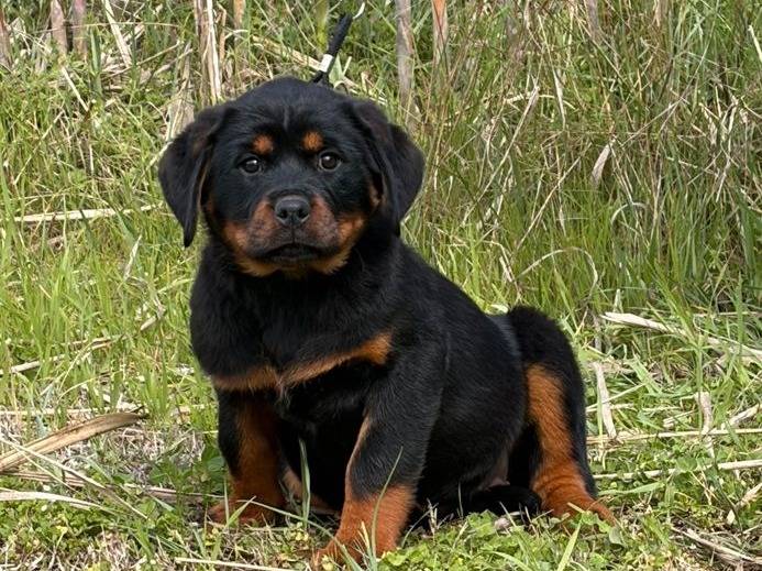 Nous proposons 1 mâle et 1 femelle Rottweiler nés le 9 décembre 2025, disponibles de suite. Ils sont inscrits dans le Livre des Origines Français (LOF), identifiés par puce et vaccinés.