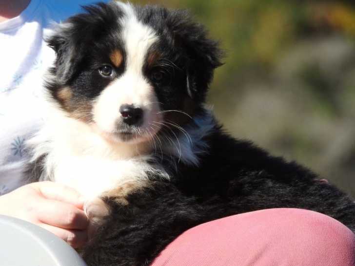 Nous proposons à la vente quatre Bergers Australiens issus d’une portée récente de six, élevés dans notre maison. Une femelle bleu merle, une autre noire tricolore, une dernière rouge tricolore et un mâle noir...