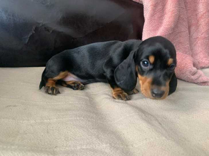 Je vends un chiot mâle Teckel né le 28 mai. C'est un Teckel standard à poil dur, à la robe noir et feu. Son père est I am du Chevalier Michel et sa mère est Imke vom Lohergraf. Elle est de lignée allemande....