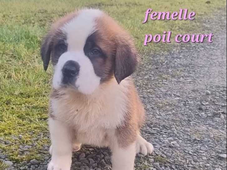 Voici une magnifique femelle Saint-Bernard à poil long, inscrite au LOF sous le numéro 35945, prête à rejoindre sa future famille. C'est la dernière femelle disponible d'une portée née le 4 décembre 2025. Son...