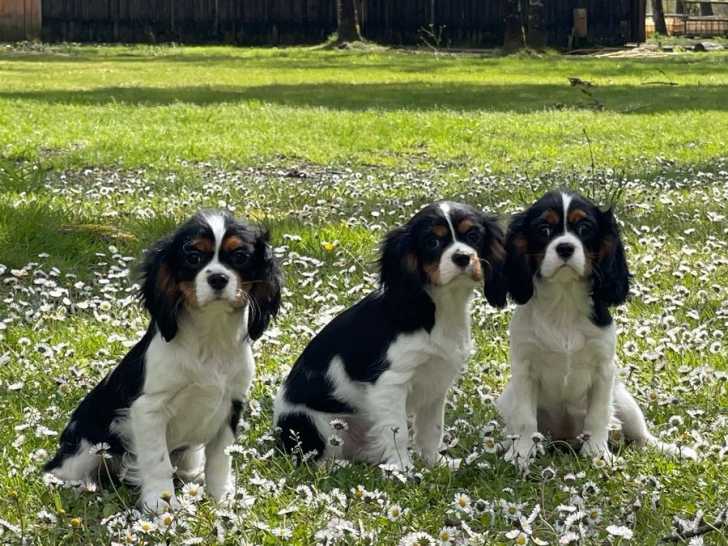 Avec plaisir, l’élevage du Haut De La Girauderie vous propose à la vente trois adorables chiots Cavaliers King Charles (deux mâles et une femelle), issus d'une portée de sept.