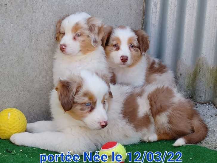 Sur une portée de 5 chiots Berger Australien nés le 28 janvier 2026, 4 chiots sont disponibles à la réservation. Une femelle bleu merle, une femelle rouge merle et deux mâles noir tricolore attendent leur...