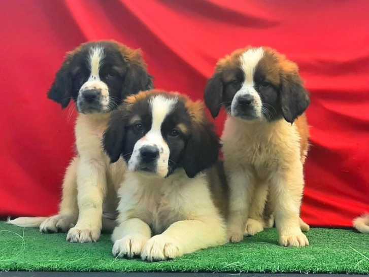 Nous avons 4 chiots Saint Bernards femelles, de robes tricolore, qui sont disponibles à la vente. Elles sont nées le 17 juillet 2022 et ont été pucées, vaccinées ainsi que vermifugées, mais elles n’ont pas été inscrites au Livre des Origines Français (LOF).