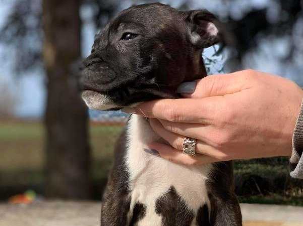 Nous proposons VAN HELSING, une femelle Staffordshire Bull Terrier née le 10 juillet 2024, uniquement pour compagnie car elle présente un léger prognathisme non confirmable. Cette chienne est très sociable ave...