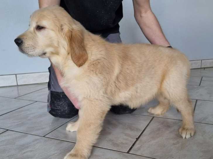 Nous proposons une adorable chiot femelle Golden Retriever inscrite dans le Livre des origines Français (LOF), née le 27 décembre 2024. Elle est immédiatement disponible et attend impatiemment de rencontrer sa nouvelle famille.
