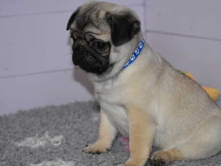 Nous sommes heureux de vous présenter nos deux chiots mâles Carlins au pelage sable, ceux-ci sont issus d'une portée de quatre.