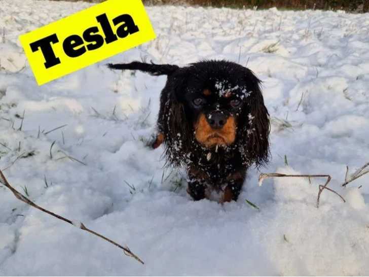 Nous vous proposons Tesla, une chienne Cavalier King Charles noir et feu, née le 26 novembre 2022, disponible pour rejoindre une nouvelle famille au prix de 1100 euros.