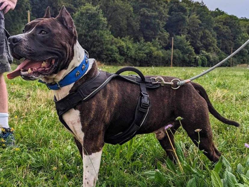 Voici Tito, un chien Staffordshire Américain Terrier au pelage marron et blanc âgé de dix ans. Loyal et calme, il aspire à un foyer aimant où il pourra profiter de longues siestes et de promenades tranquilles au quotidien.