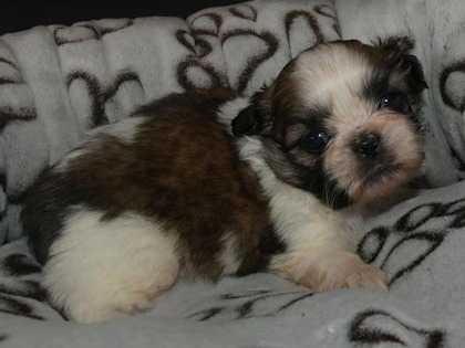 Nous vous annonçons la naissance de la très jolie portée de Jimilee et Makaio, composée de très jolis chiots Shih Tzu noirs et blancs ou fauve rouges et blancs. Ils sont de qualité expo, nés à la maison et élevés sans cage.