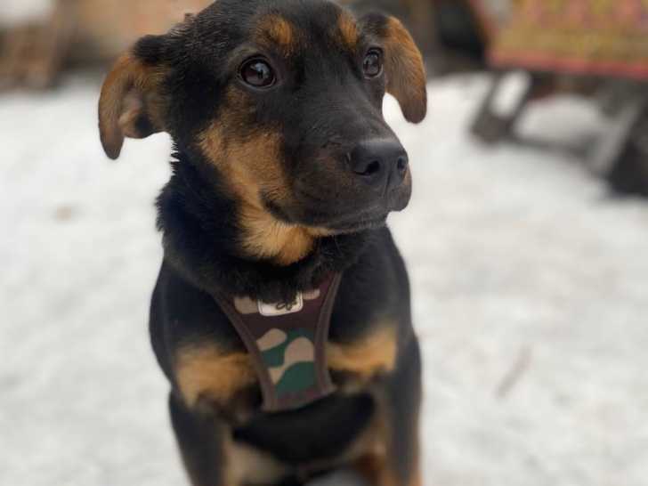 Alma, une toute jeune chienne active et joyeuse, attend sa famille pour la vie. Elle se trouve dans un refuge en Ukraine. Elle est née en septembre 2025. Elle pèse 9,5 kg. Une fois adulte, elle sera de taille petite à moyenne.