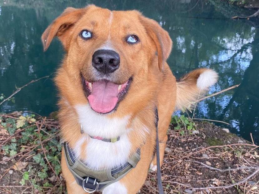 Alto, mâle croisé berger, est à adopter. Il est né le 01/01/2024. Il est de taille moyenne, fauve et blanc aux yeux bleus. Il est arrivé le 18/09/2025.