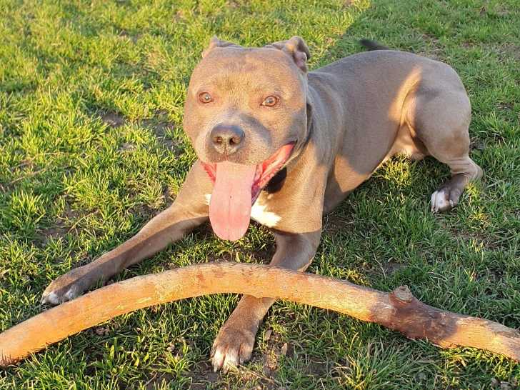 Usko est un Amstaff robuste, descendant d’une belle lignée. Il est adorable au quotidien et très dynamique. C'est une boule d'amour qui aime se dépenser. Il est habitué aux enfants et aux chats. Il est sociable...