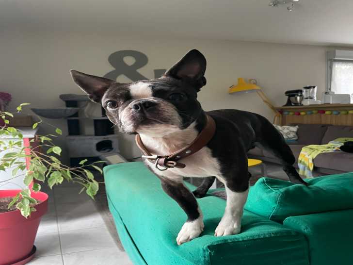 Texas de Goute Agude dit Barney, mon Boston Terrier, est disponible pour saillie.