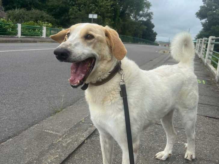 Il est croisé Labrador et Patou. C'est une montagne de gentillesse.