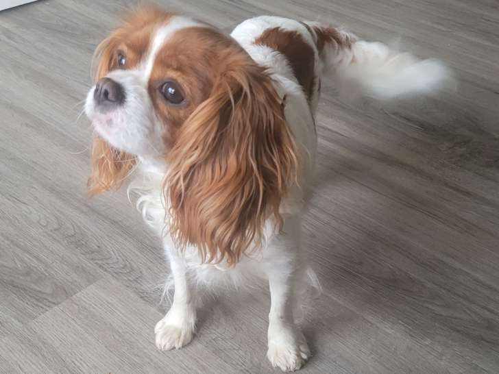 Vicky, femelle Cavalier King Charles de petit gabarit, avec une morphologie homogène, fine et élancée, au caractère typique du Cavalier King Charles recherche un mâle de gabarit moyen à petit (entre 6 et 8 kg maximum) pour une saillie.