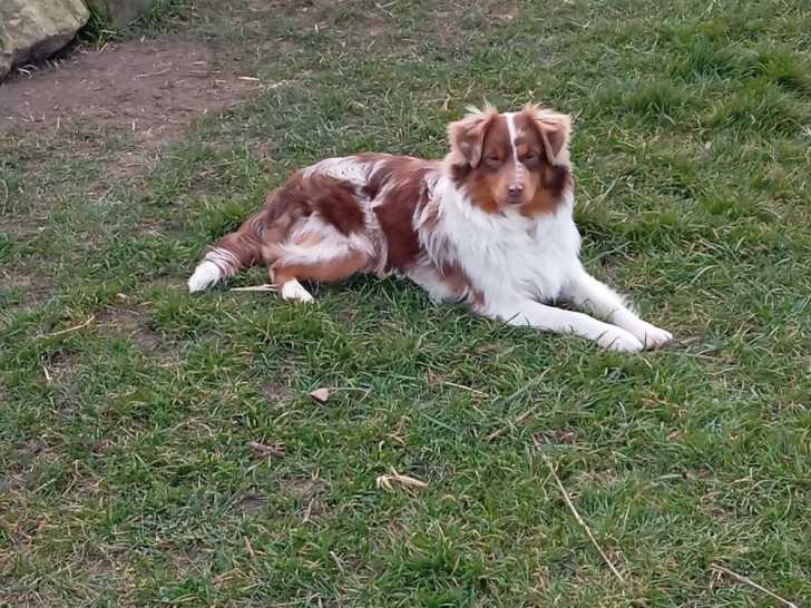 Né le 20 juillet 2024, ce chien mâle Berger Américain Miniature est un excellent reproducteur ayant déjà produit une portée de sept chiots. Il vit avec d’autres chiens et chevaux, ce qui renforce son équilibre.