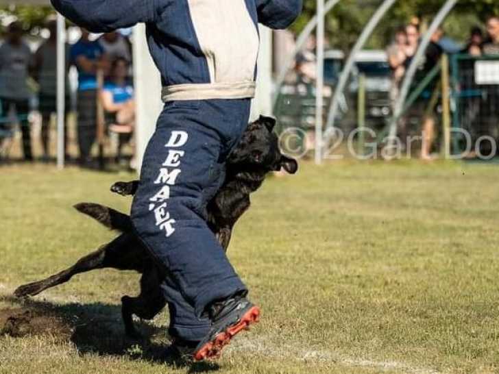 Issu d'une lignée de travail, il se distingue par une force mentale remarquable, un niveau en Ring 2 témoignant de ses capacités. Des vidéos de ses performances en compétition et à l'entraînement sont disponibles pour illustrer ses capacités. Côté santé, il est à jour de ses tests de dépistage, régulièrement vacciné, vermifugé et pucé.