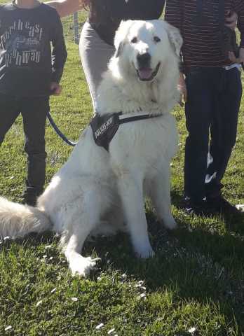 J'ai un Patou de 1 an. Il est très gentil, affectueux et très câlin, il ne demande que ça. Le seul problème, c'est qu'il est fugueur. Nous avons fait tout ce qu'on a pu pour aménager l'extérieur, mais rien à faire : il trouve toujours un moyen pour s'enfuir. Plus d'une fois je lui ai couru après dans le village. Cela peut durer des heures avant de pouvoir l'attraper. J'ai 5 enfants dont je dois m'occuper, alors j'ai pris la décision de le laisser à des gens qui s'y connaissent.