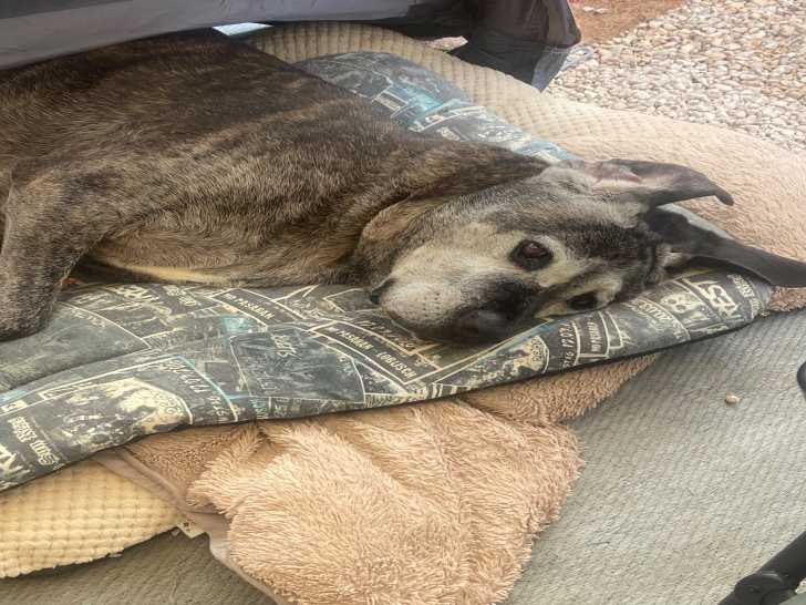 C’est un pépère qui a lui aussi quelques problèmes de santé, simplement au niveau de son arthrose, mais il est encore capable de faire à son rythme des belles balades que je ne peux plus assurer. Il est sociable avec les enfants et les autres animaux qu’il connaît. Il réagit tout de même lorsqu’il croise d’autres chiens.