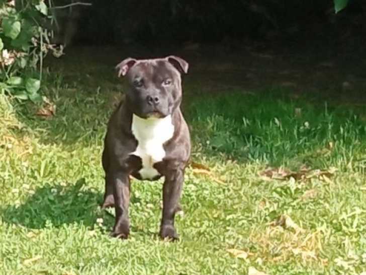 Notre élevage professionnel met à la disposition d’un élevage ou de toute personne souhaitant faire reproduire sa lice, un chien mâle adulte Staffordshire Bull Terrier.