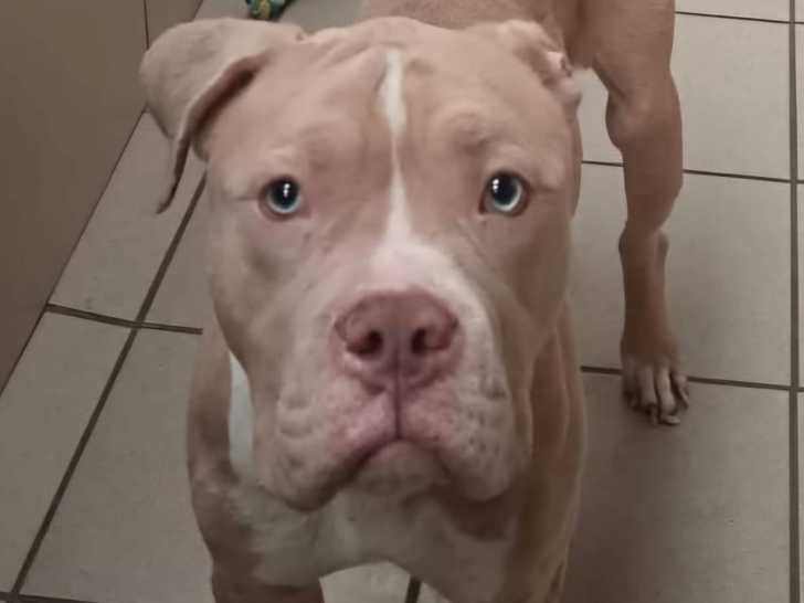 Son nom, c'est Ghost, ce jeune chien American Bully marron et blanc d’un an que nous vous proposons à l'adoption. Il n’a pas une bonne entente avec d’autres animaux domestiques.
