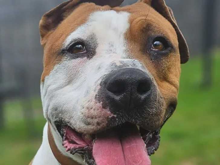 Voici Tito, un chien Staffordshire Américain Terrier au pelage marron et blanc âgé de dix ans. Loyal et calme, il aspire à un foyer aimant où il pourra profiter de longues siestes et de promenades tranquilles...