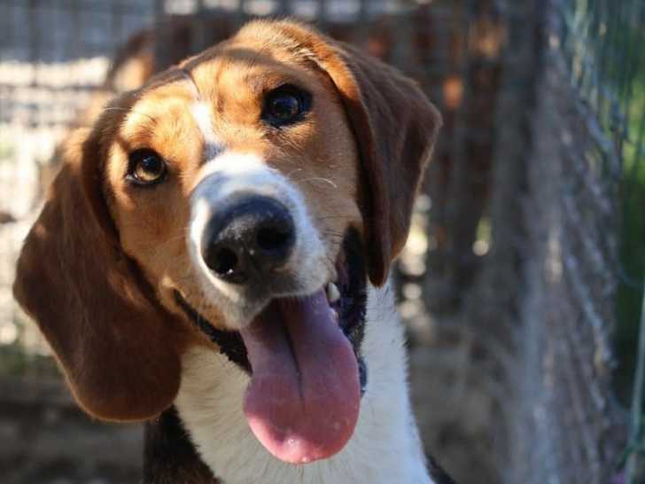 Son nom, c'est Upsy, ce jeune chien tricolore âgé d’un an que nous vous proposons à l'adoption. Il s’entend bien avec ses congénères.