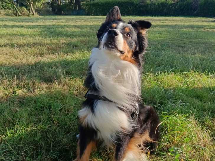 Son nom, c’est Leïko, ce chien Berger Australien au pelage tricolore de neuf ans que nous vous proposons à l'adoption. Il est sociable avec tous.