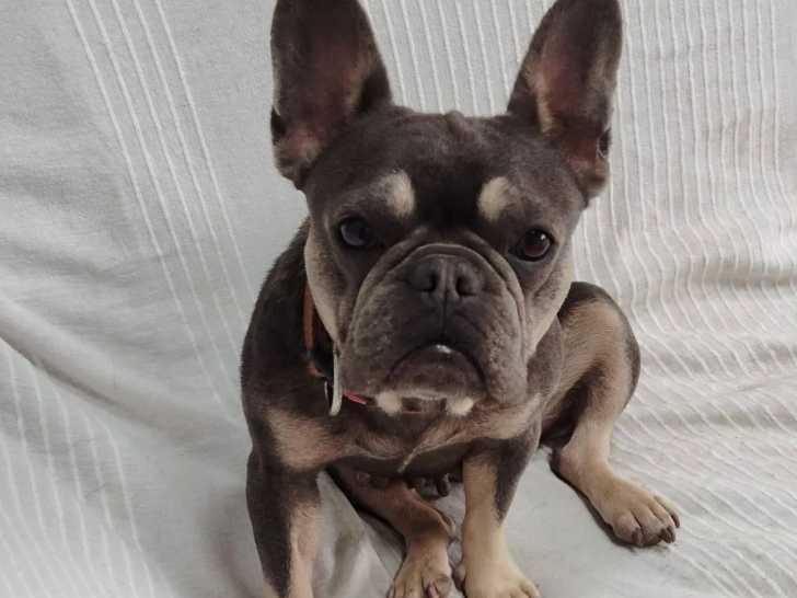 Voici Gaia, un chien Bouledogue Français au pelage noir et beige de quatre ans que nous mettons disponible à l'adoption. Non compatible avec les chats, il attend un foyer aimant et ayant un jardin pour une vie épanouie.