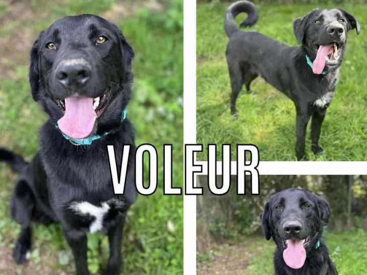 Il s'appelle Voleur, ce jeune chien de couleur noire avec marque blanche et âgé d'un an que nous vous proposons à l'adoption. Cet animal attend un foyer bienveillant qui a déjà un chien et qui poursuivra son éducation.