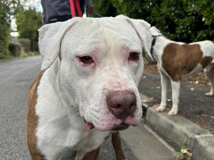 Il s’appelle Tayson, ce chien au pelage marron et blanc de deux ans que nous vous proposons à l'adoption. Ce dernier se révèle sociable envers ses congénères et les enfants.