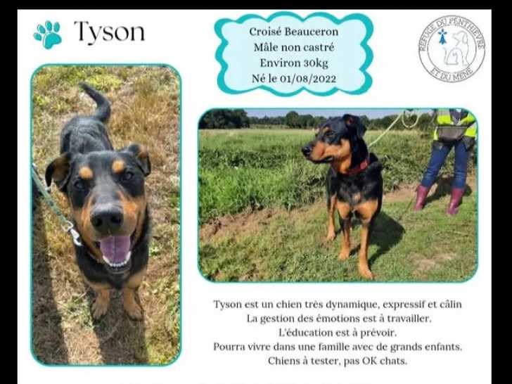 Notre refuge vous offre l’opportunité d’adopter Tyson, un chien noir et feu âgé de trois ans en quête d’une famille qui l'aimera.