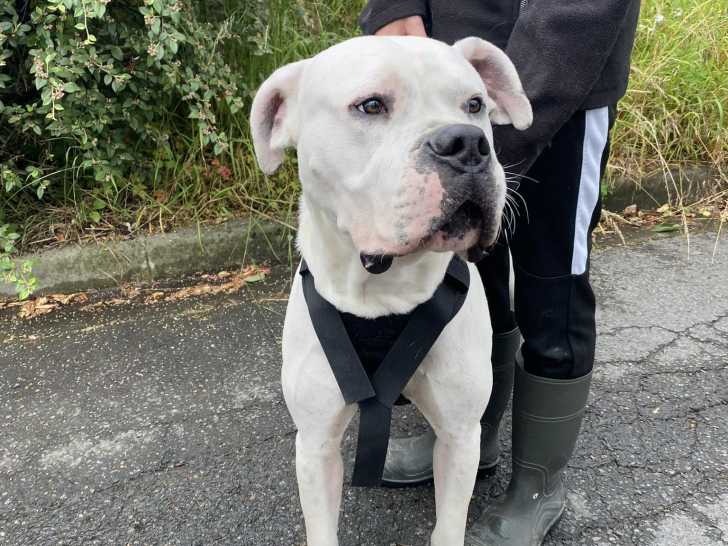 Nous vous présentons Frost, un chien Dogue Argentin au pelage blanc de huit ans. Doux, câlin et sensible, il aime les routines et les promenades. Une maison avec jardin lui conviendrait bien. Il s’entend ave...