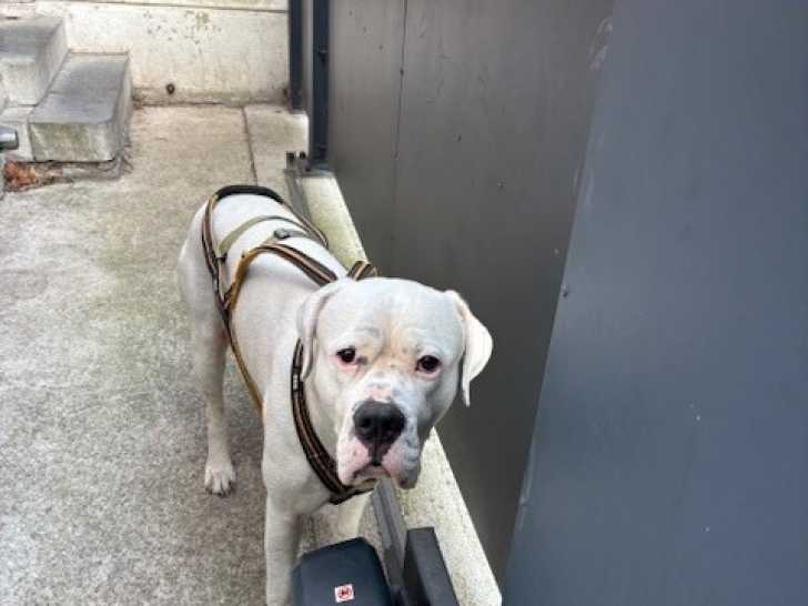Découvrez Dogo, un chien Dogue Argentin au pelage blanc de dix ans, affectueux, doux et calme. Il adore les balades sans tirer en laisse, les câlins et les jeux, connaît les enfants, et s’entend avec les chiens...