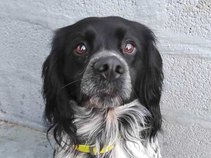 Nous avons le plaisir de vous présenter Oscar, un Épagneul Breton noir et blanc de quatre ans. C'est un gentil chien. Nous tenons à préciser qu'il est très craintif et qu’il lui faudra un peu de temps pour s'habituer à un nouvel environnement.