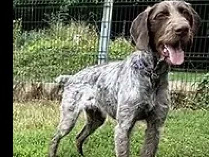 De couleur marron et blanche, Volcan est un jeune chien Griffon à Poil Dur Korthals âgé d'un an que nous avons le plaisir de vous proposer à l'adoption. Il attend un foyer qui lui offrira tout l’amour qu’il mérite.