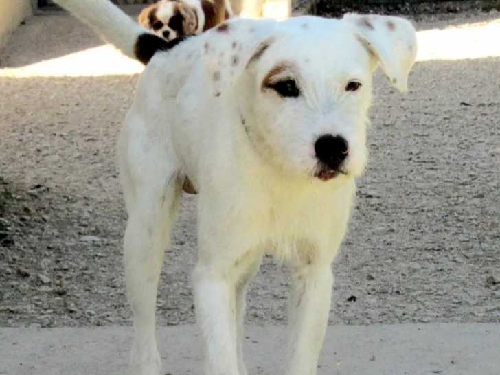 Arborant un pelage blanc, Punchy est un chien Griffon âgé de cinq ans que nous vous proposons à l'adoption. Sociable avec tous, il recherche une famille aimante qui dispose d'un jardin.