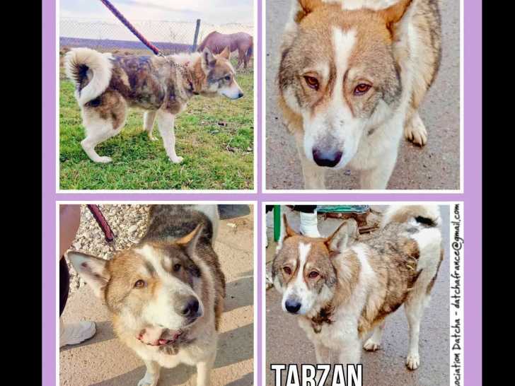 Nous vous présentons Tarzan, un chien Laïka Russo-Européen marron et blanc d’un an, disponible à l'adoption. Il espère trouver une famille aimante pour une vie heureuse.