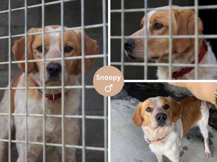 Snoopy est un chien marron et blanc âgé de deux ans que nous vous proposons à l'adoption. Il s’entend bien avec ses congénères ainsi qu'avec les enfants.